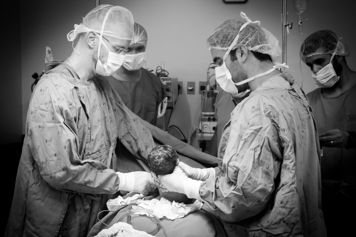 Ela esperou e enfrentou as contrações por horas a fio....mas os batimentos do Gustavo estavam irregulares e junto com outros fatores, decidiram (junto com o médico) pela cesárea (que foi muito bem indicada nesse caso).