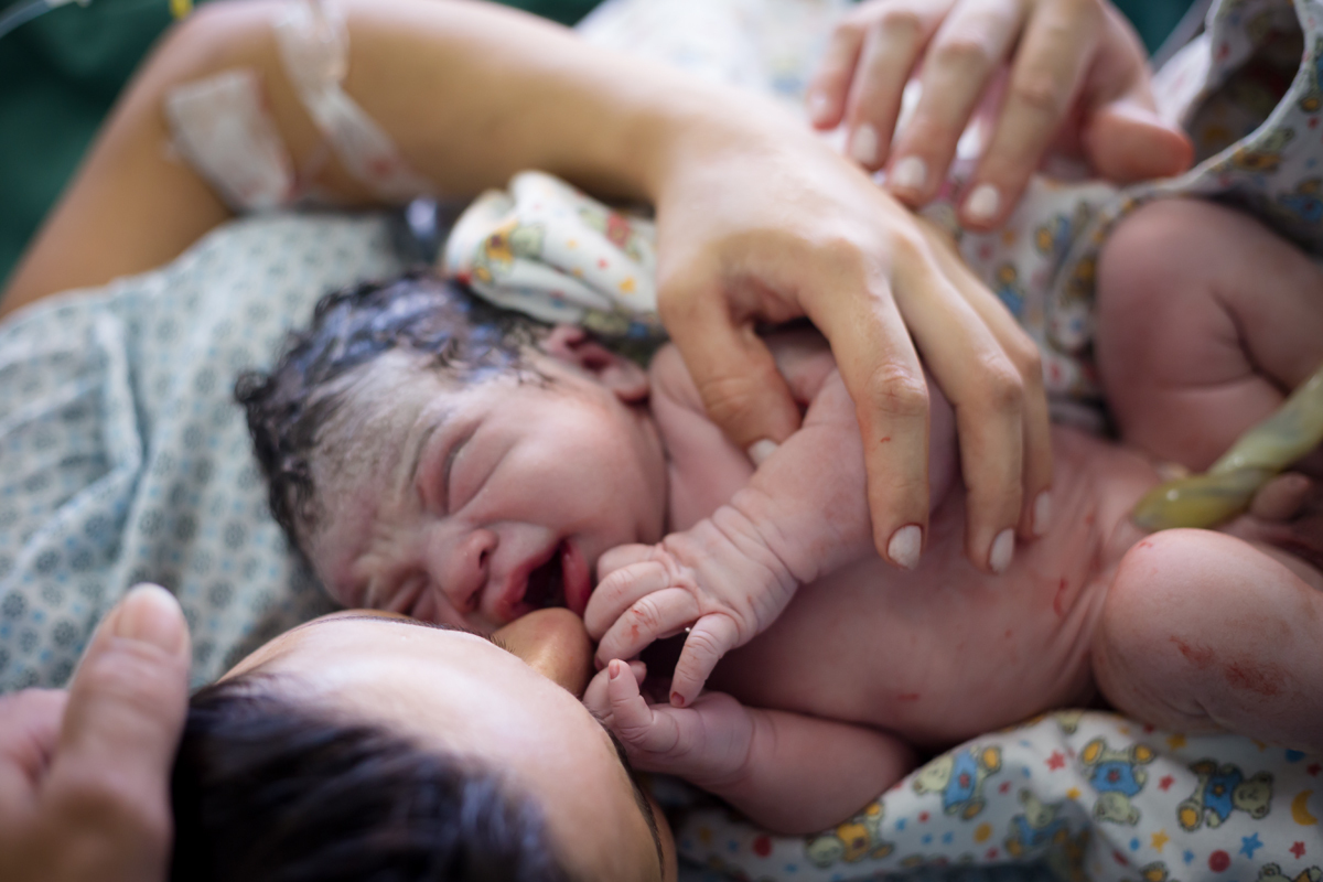 Mas após tantas horas, sem consegui comer direito, o cansaço chegou e bateu. O plantão foi trocado e a médica ofereceu uma cesárea. Esgotada ela aceitou. Mas quem decidia como chegaria ao mundo, seria o próprio Miguel. Assim que a médica saiu para arrumar a sala, Adriana entrou no expulsivo. Seu filho iria nascer em breve!