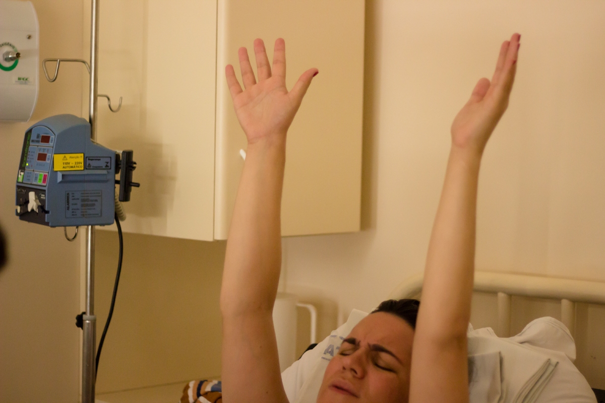 A equipe acompanhou e a encorajou em todo momento, assim como o marido Daniel que não saia de perto.