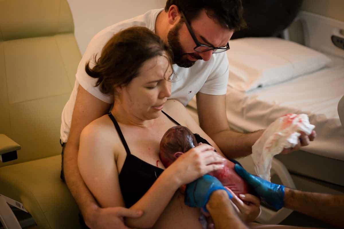Nesse caso, mesmo sendo um parto super rápido (nasceu 2 horas após chegarmos no hospital e ela teve uma dilatação bem rápida), Alyne sentiu contrações intensas, dizia que era loucura querer um parto assim, que iria morrer e perguntava ansiosa porque não nascia logo??! Hahahaha