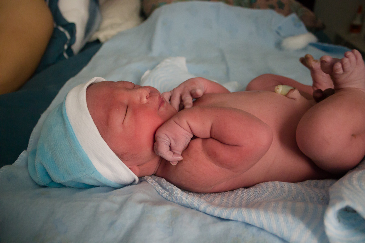 Foi um parto lindo e cheio de emoção! Matheus nasceu, chorou um pouquinho e depois não chorou mais, ficou quietinho no colo da mamãe.