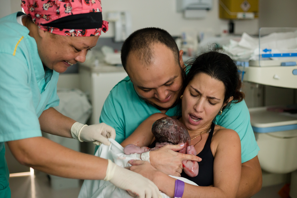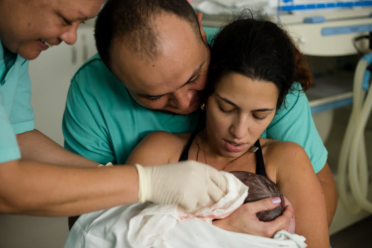E assim ela buscou a melhor posição, deixou a tradicional posição "deitada na cama" pra trás, e pariu Matheus lindamente na banqueta, apoiada pelo seu companheiro.